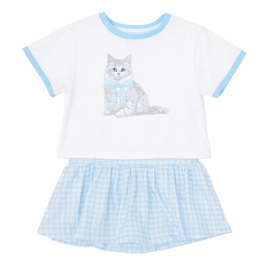 Blue Gingham Bow Kitty White Ringer Boxy Tee – Girls Boutique Graphic Shirt | Bossier City, LA