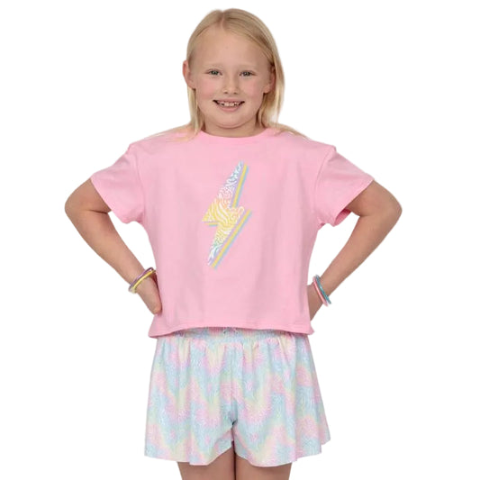 Zebra Rainbow Lightning Bolt Pink Boxy Tee for Girls – Trendy Boutique Graphic Shirt | Bossier City, LA