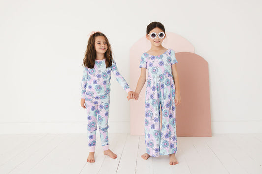 Girls Smiley Face Satin Short Sleeve Pajama Set | Colorful Floral Sleepwear – Bossier City Louisiana Boutique