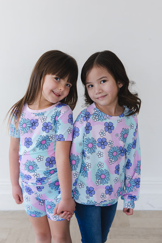 Girls Smiley Face Satin Short Sleeve Pajama Set | Colorful Floral Sleepwear – Bossier City Louisiana Boutique