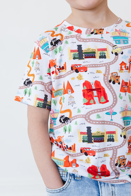 Girls Glitter Falling Stars Pink Boxy Tee | Kids Boutique Top | Bossier City Boutique