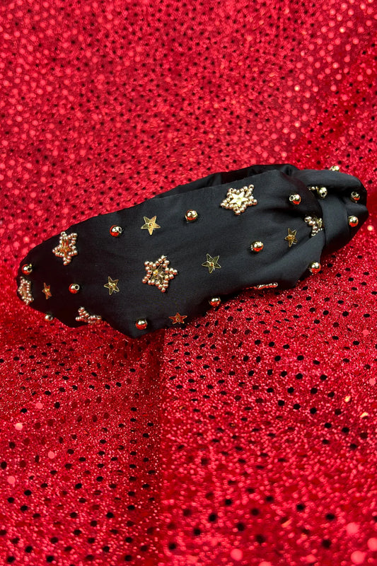 Black & Gold Confetti Beaded Top Knot Headband