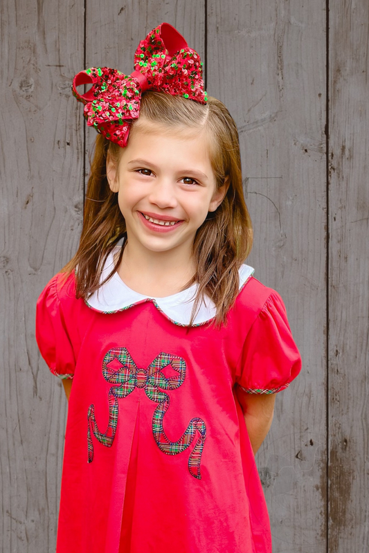 Red and Green Velvet Sequin and Grosgrain Overlay Hair Bow – Wee Ones™ Holiday Collection