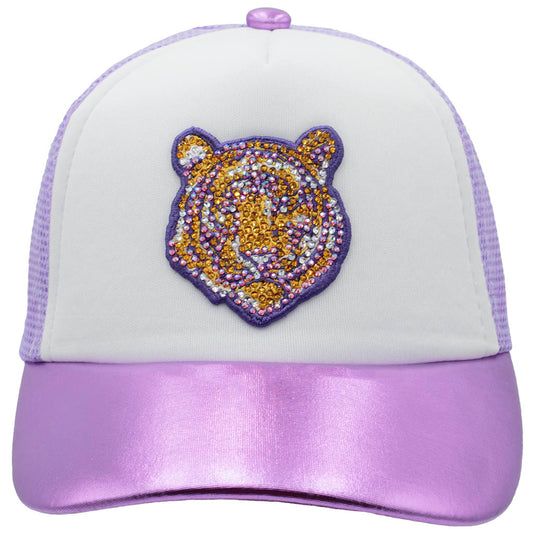Rhinestone Tiger Youth Trucker Hat – Lavender or Metallic Purple