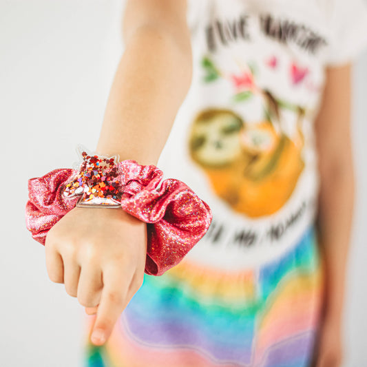 Unicorn Shaker Glitter Scrunchie - Hot Pink