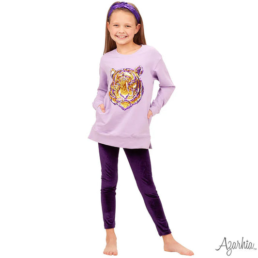 Lavender Tiger Sequin Tunic – Girls Long Sleeve Game Day Top
