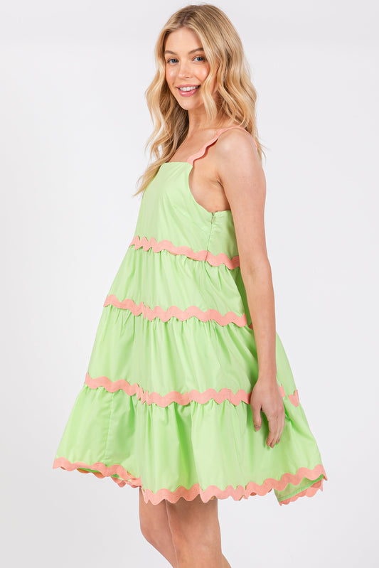 Lime Floral Chiffon Ruffle Shoulder Tiered Maxi Dress