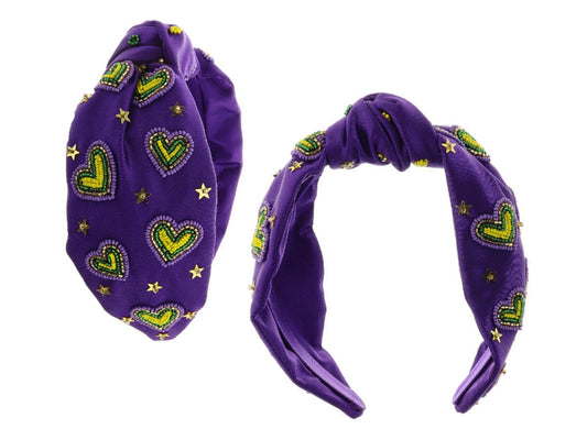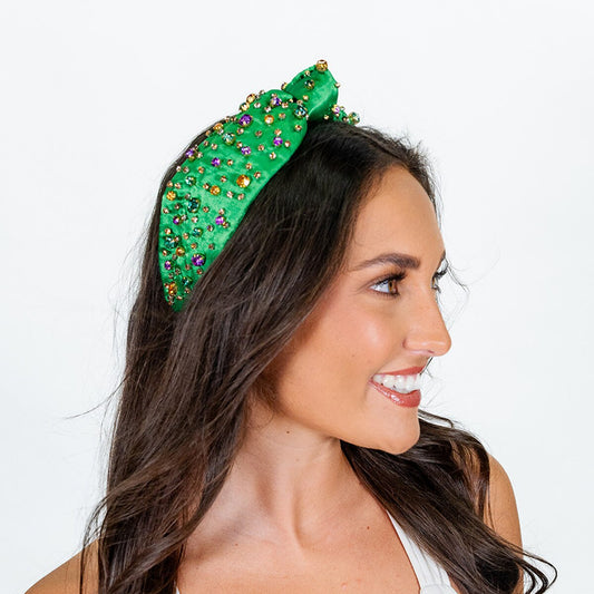 Mardi Gras Gemstone Knotted Headband – Green Multi