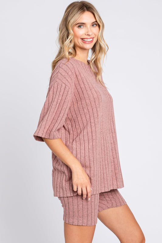 Mauve Ribbed Soft Short Sleeve Shorts Set