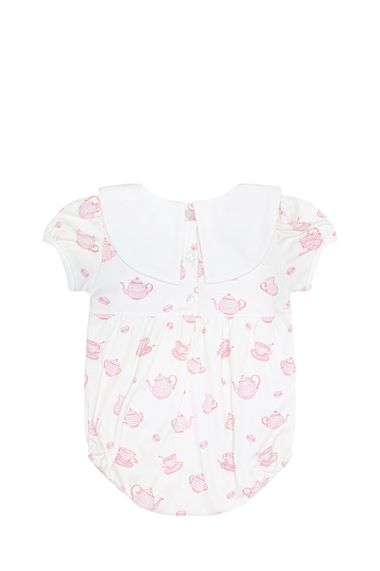 Petite Pointe Fleur - Long Sleeve Smocked Ruffle Bubble with Skirt