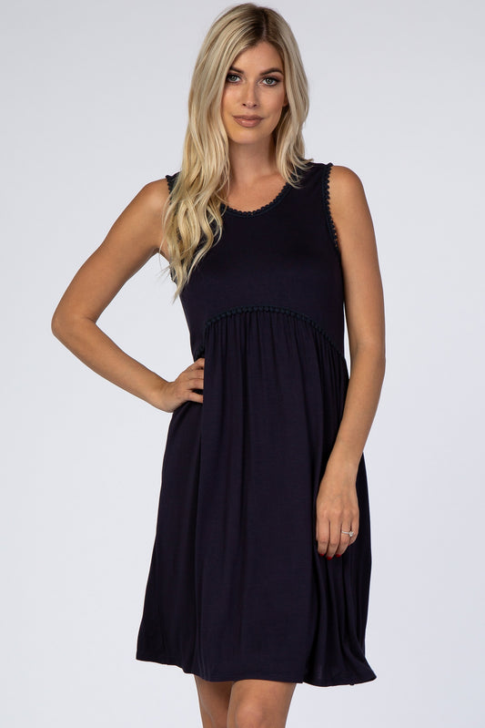 PinkBlush Navy Blue Sleeveless Round Neck Pom Pom Detail Maternity Dress