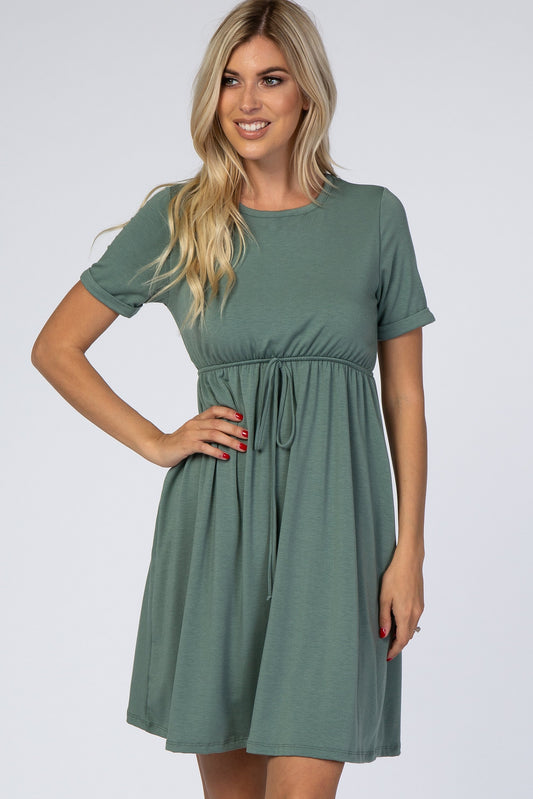 PinkBlush Sage Green Cuff Sleeve Waist Tie Dress