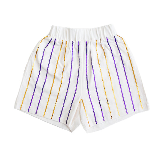 Purple and Gold Sequin Striped Kid Shorts