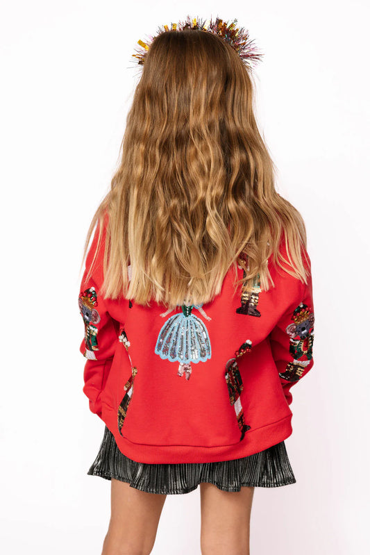 Queen of Sparkles Red Nutcracker Ballet Sweatshirt | Holiday Sequin Top - Kids