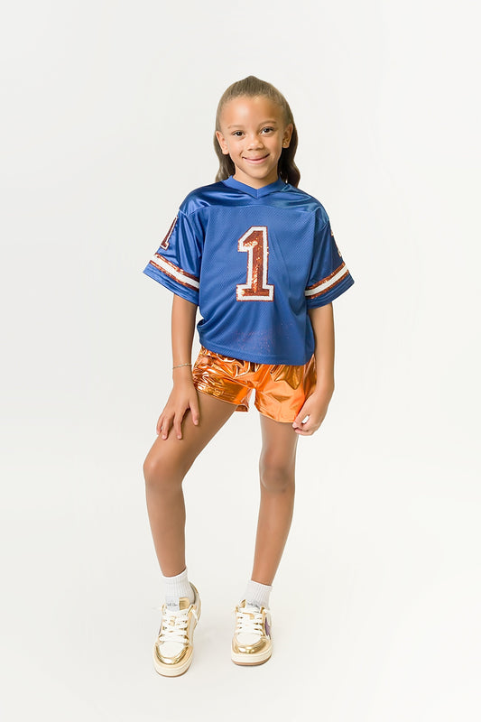 Royal Blue and White Flip Sequin Shirt Kids