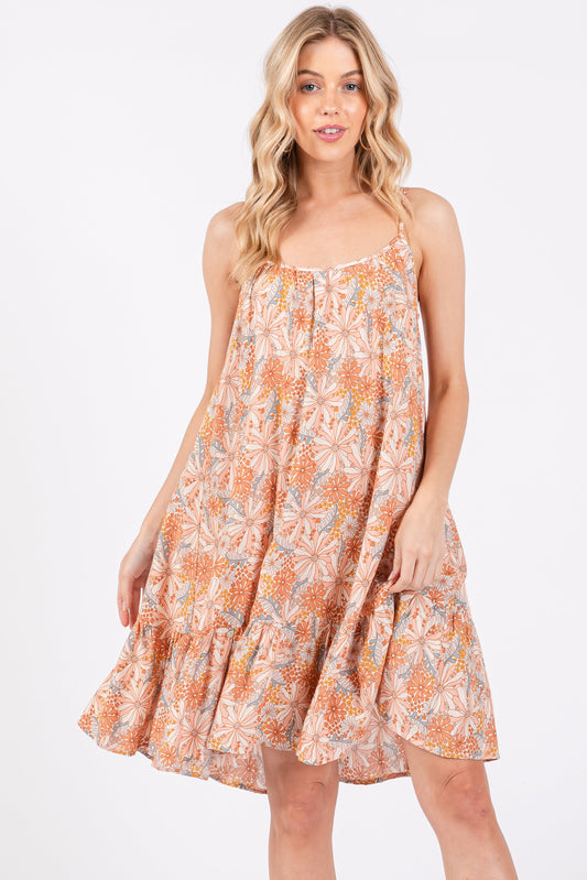 Rust Floral Ruffle V-Neck Maternity Midi Dress
