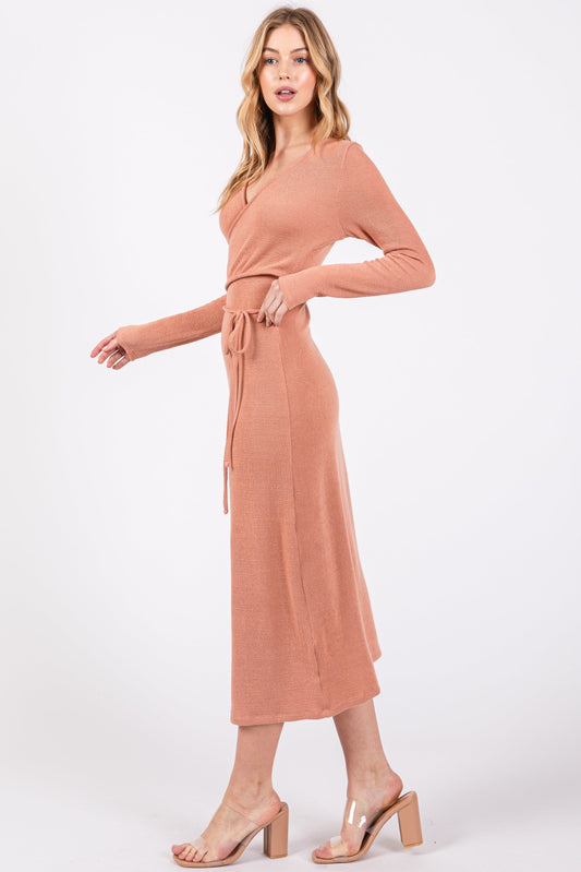 Rust Ribbed Long Sleeve Wrap Nursing Dress