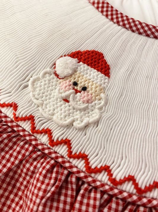 Santa Smocked Bloomer Set – Baby & Toddler Girls Red Gingham Christmas Outfit