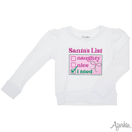 Santa’s List “I Tried” Sweatshirt – White Christmas Top for Girls