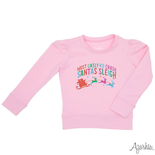 Santa’s Sleigh “Most Likely to Crash” Sweatshirt – Light Pink Christmas Top for Girls