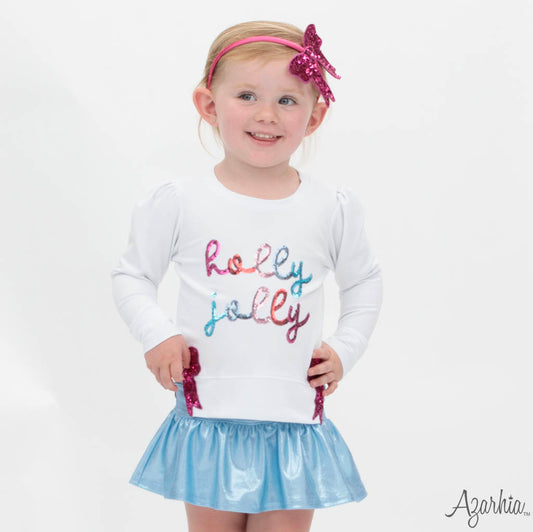 Sequin Holly Jolly Sweatshirt with Hot Pink Bows – Girls Holiday Top