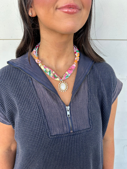 Scarf Charm Necklace - Pink Multi Flowers with Pink Star