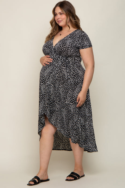 Black Animal Print Plus Maternity Wrap Dress