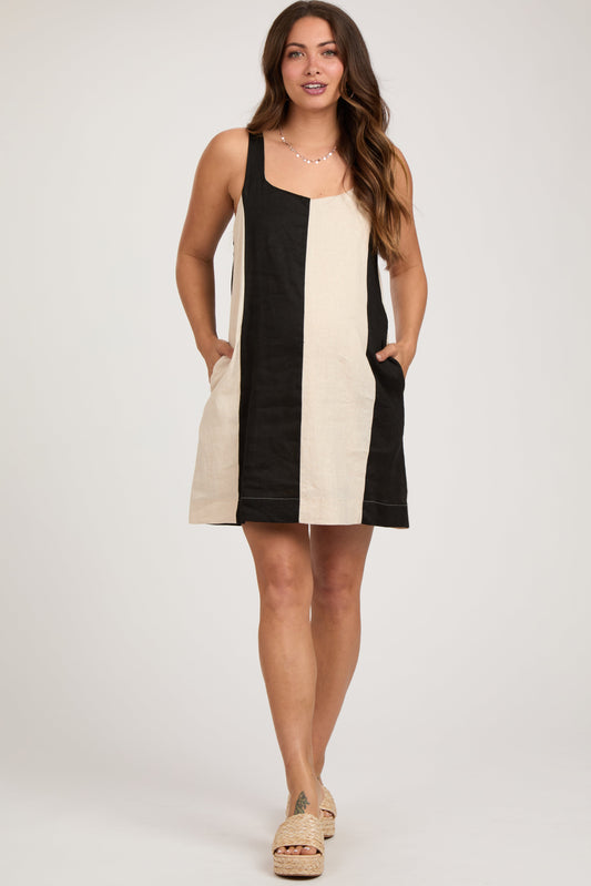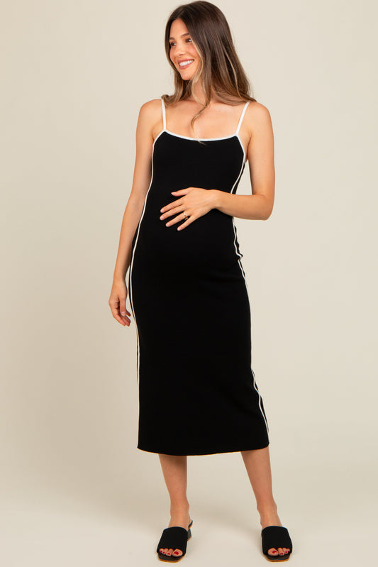 Black Colorblock Trim Knit Side Slit Midi Dress