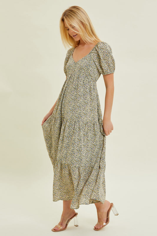 Black Ditsy Floral Tiered Maternity Midi Dress