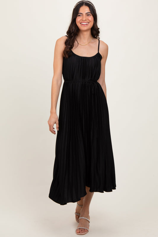 Black Pleated Knotted Long Sleeve Maternity Dress
