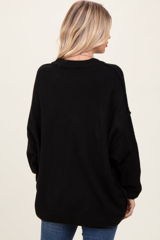 Black Oversized Crewneck Melange Knit Maternity Sweater