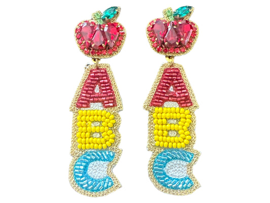 ABC Embroidery Grosgrain Hair Bow with Navy Moonstitch Edge