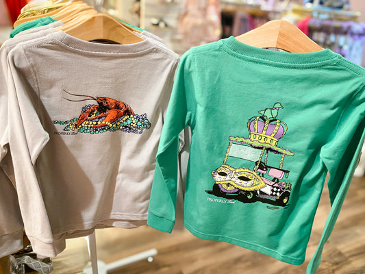 Boys Mardi Crawfish LS Ice Grey T-Shirt