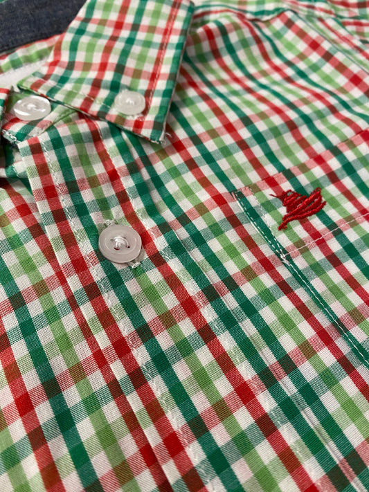 Boys Red & Jolly Green Plaid Shirt – Festive Holiday Button Down
