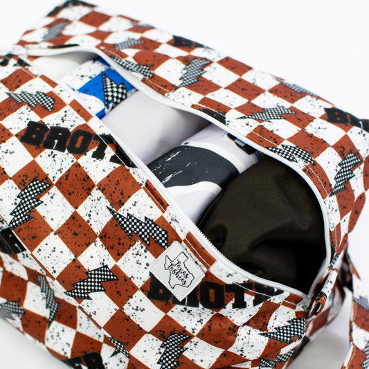 BRONZE CHECKERS TODDLER SWIM TRUNKS