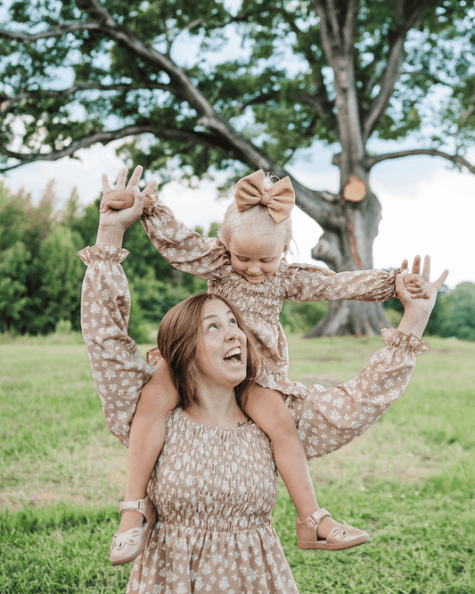 Caroline Long Sleeve Square Neck Dress - Light Khaki Floral