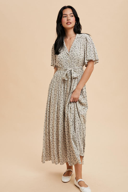 Cream Front Tie Ruffle Sleeve Maternity Midi Dress