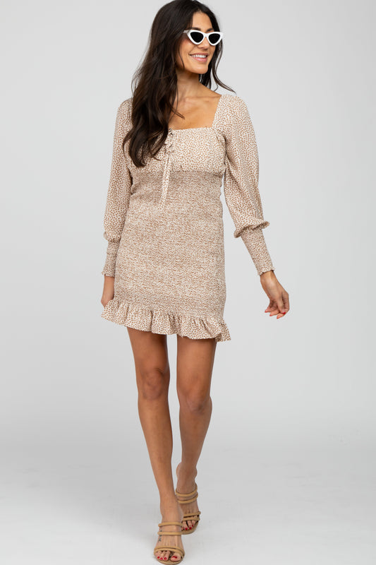 Cream Long Sleeve Oversized Sweatshirt Mini Dress