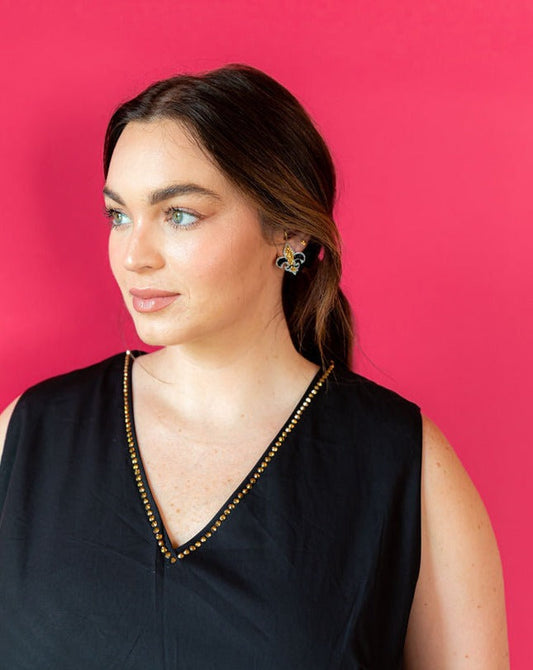 Fleur de Lis Football Earrings - Black and Gold