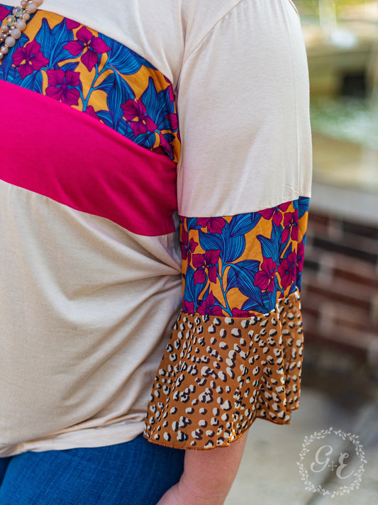 Flow Together Beige Top With Pink and Floral Accents