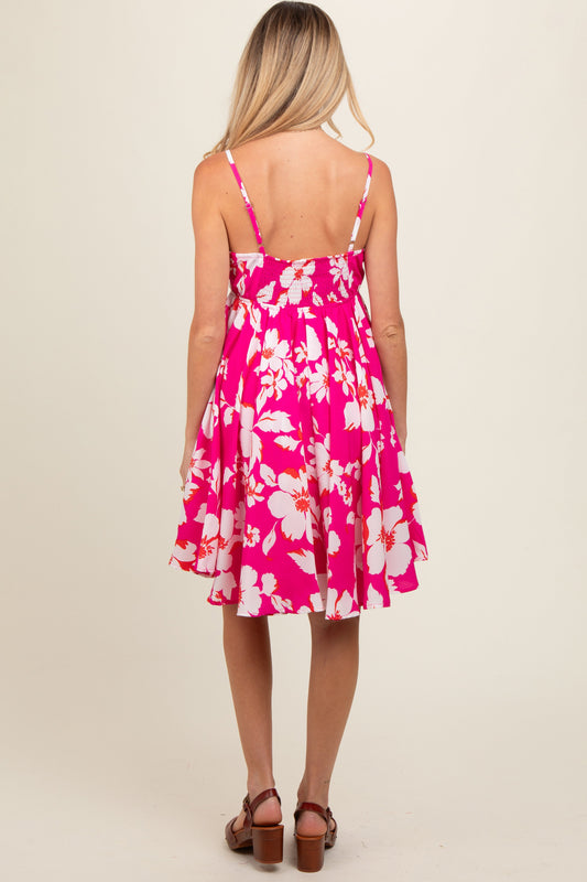 Fuchsia Floral Tiered Sleeveless Maternity Midi Dress