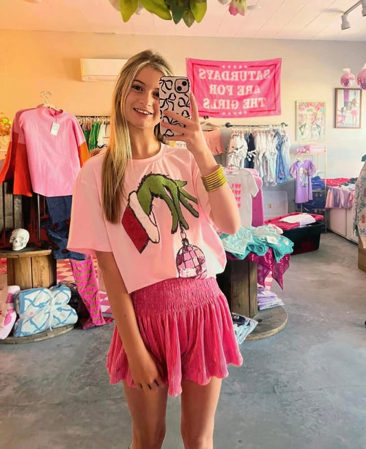 Green Mischief Hand Pink Disco Ornament Tee