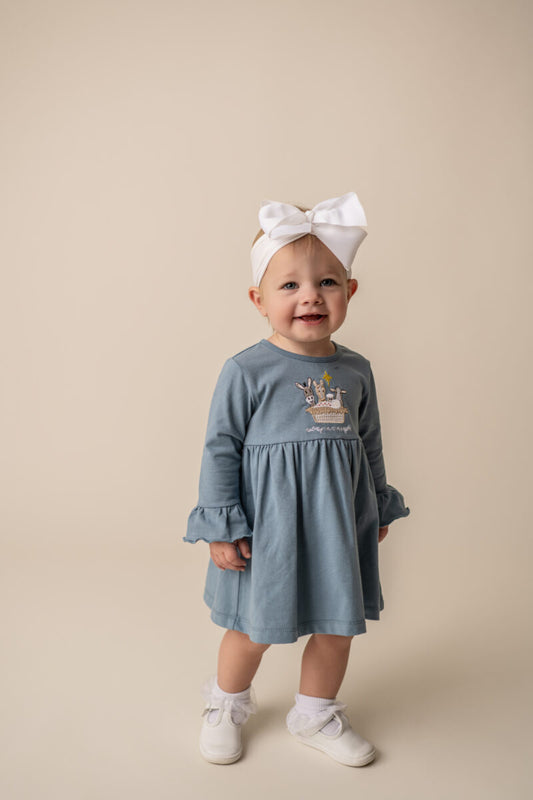 Santa Smocked Long Sleeve Bishop Dress – Girls Holiday Gingham Christmas Dress