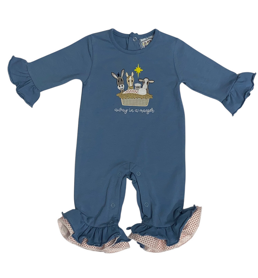 Santa Smocked Ruffle Pant Set – Girls Blue Top & Red Gingham Christmas Outfit