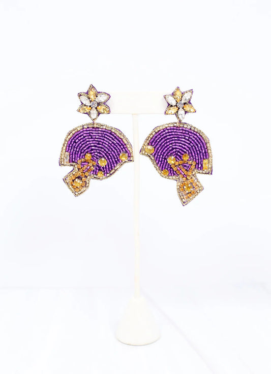 Let's Go Jersey Beaded Earring PURPLE GOLD