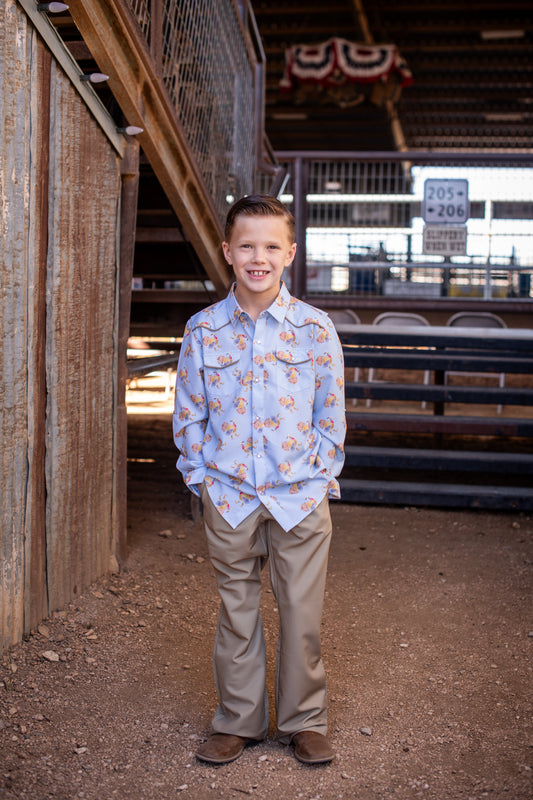 Turkeys Pearl Snap Long Sleeve Shirt – Boys Western Performance Shirt