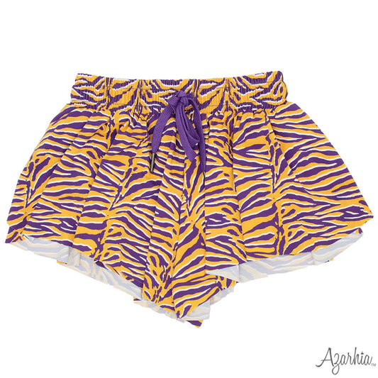 Purple Gold Sequin Tiger White Ruffle Sleeve