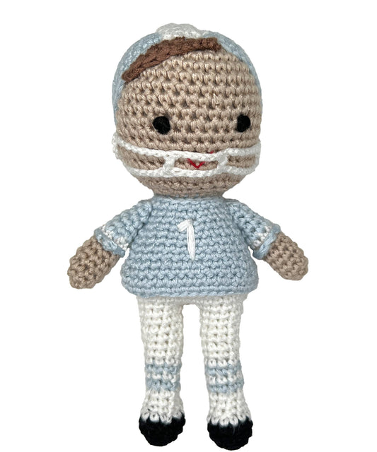Football Player Bamboo Crochet Rattles in Multiple Colors