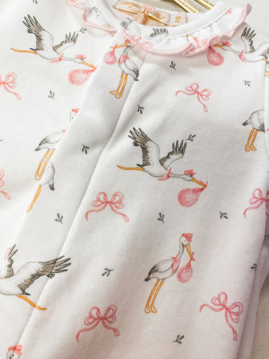 Tiny Storks Girl Printed Convertible Gown w/ Ruffle