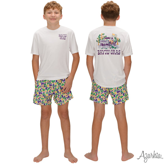 Mardi Gras Camo Deer on Gray Short Sleeve T-Shirt